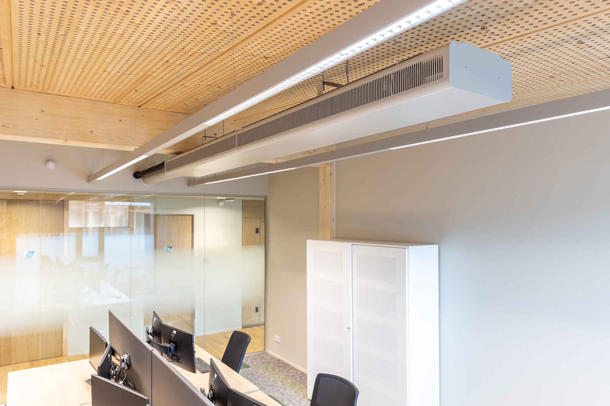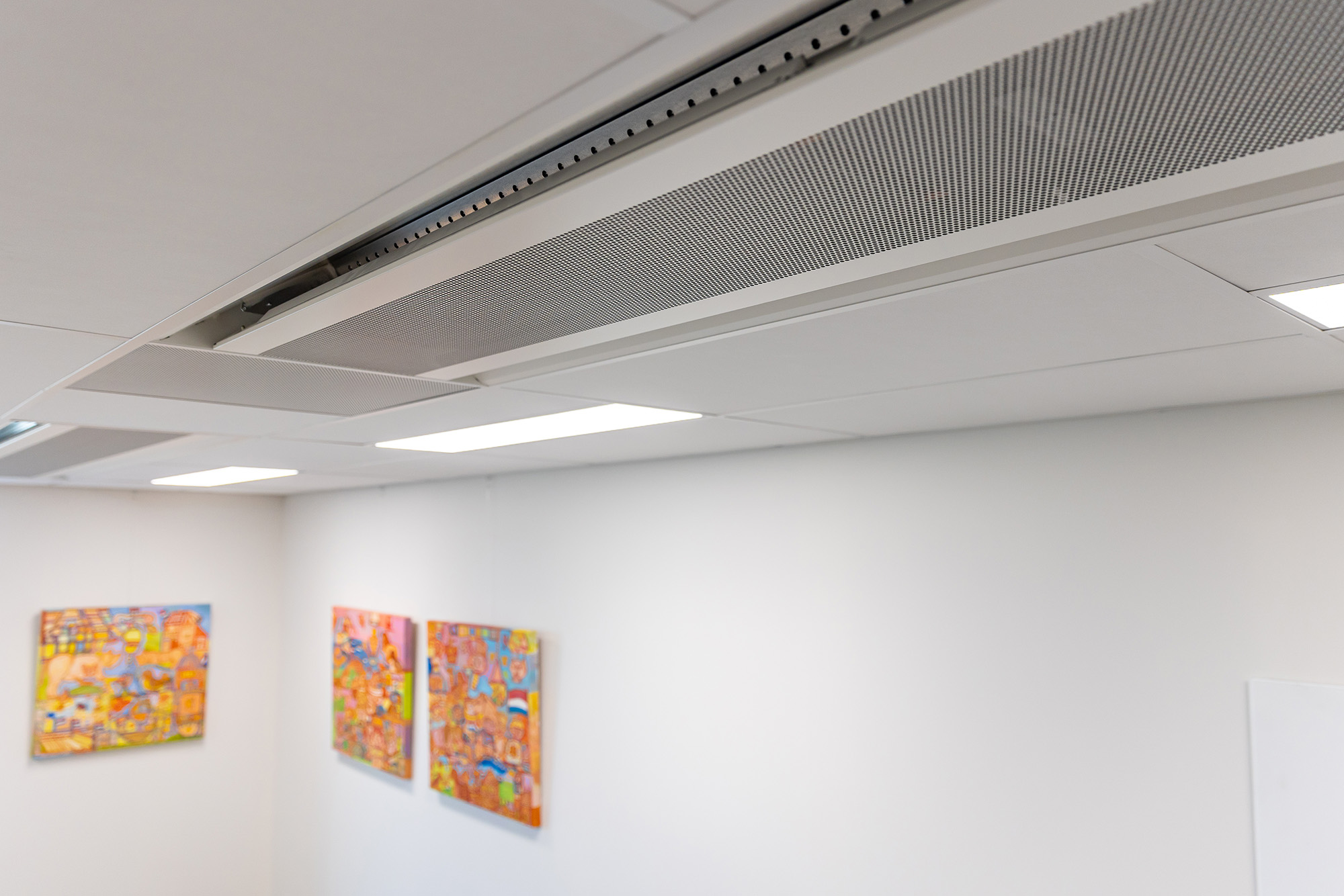 De Halton Rex RE6 is een inductie-unit die subtiel verzonken is in het verlaagd plafond, waardoor deze naadloos in het ontwerp is geïntegreerd. Zowel de Rex REE en de Rex RE6 bieden medewerkers de mogelijkheid om het binnenklimaat, in de zone waarin zij zich bevinden, volledig naar wens aan te passen. Dit wordt mogelijk gemaakt door de geavanceerde HVC-regeling, die afzonderlijk instelbare luchtsnelheden biedt voor een optimale klimaatbeleving. Beide inductie-units zijn overigens verkrijgbaar in alle mogelijke RAL-kleuren.